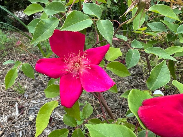 Generalist garden centers tend to recommend Rosa rugosa and pimpinellifolia as being robust roses and tolerating some drought as well as poor soil. That’s what I went with in the beginning, because I love the vivid colors and perfumes of these varieties. In my garden however, even with good soil and watering, they did a lot less well than other varieties. For me Rosa chinensis, floribunda, and moschata have worked out better so far.