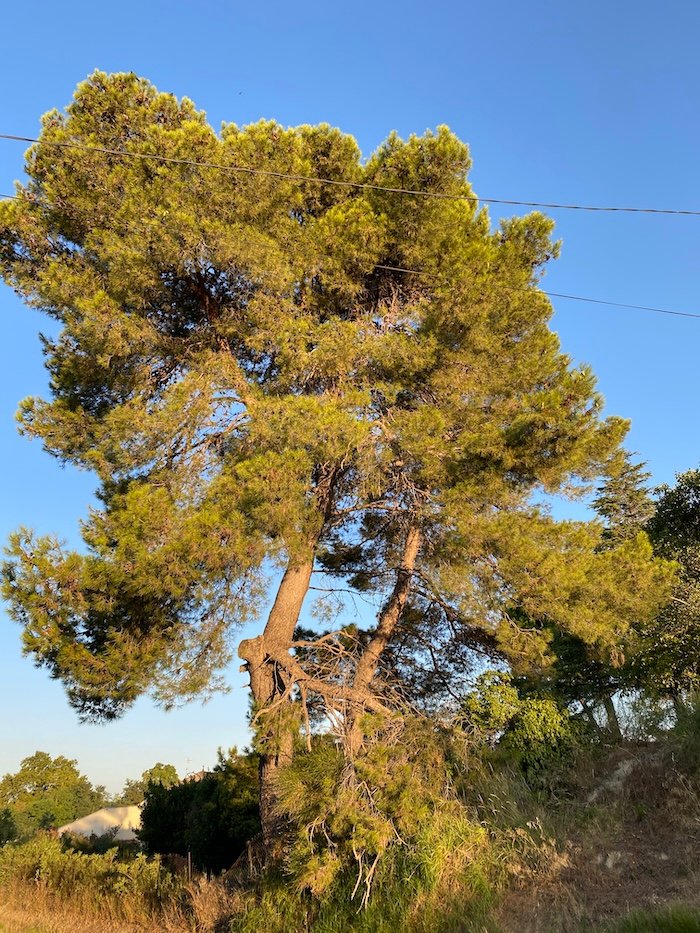 Pinus pinea, the Mediterranean stone pine (pin parasol) is native to this region since Roman times and is one of those iconic “Mediterranean” trees. They are incredibly beautiful when fully grown. Their shade is wonderful, they are evergreen, they grow quickly and they can withstand heat and drought very well.